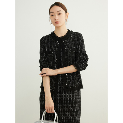 早春款 轻奢G品水钻羊毛针织开衫女装25新款时尚流苏边小香风外套