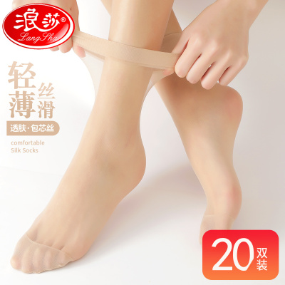 浪莎红短丝袜女夏季隐形肉色薄款短袜耐穿耐磨防勾丝透明包芯丝袜