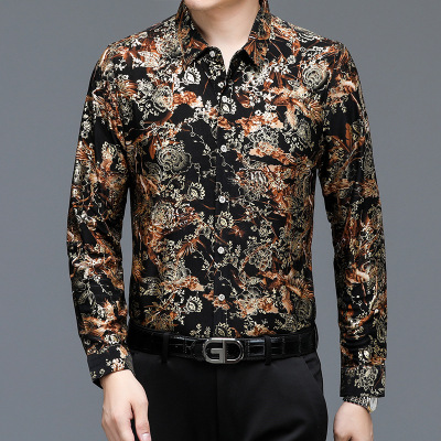 新款男士长袖衬衫秋季时尚休闲短花衬衣碎花免烫男装潮流衬衣