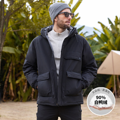 羽绒服男士冬季新款加厚保暖白鸭绒立领工装潮流青年男装外套冬装