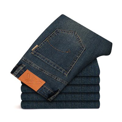 秋冬男士牛仔裤直筒型修身弹力中青年时尚个性复古直筒休闲裤