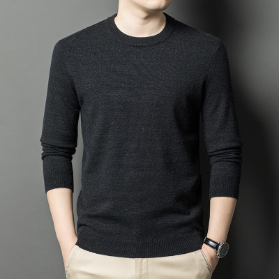 秋冬新款羊毛衫男士圆领青年休闲针织毛衣宽松时尚纯色打底羊毛衫