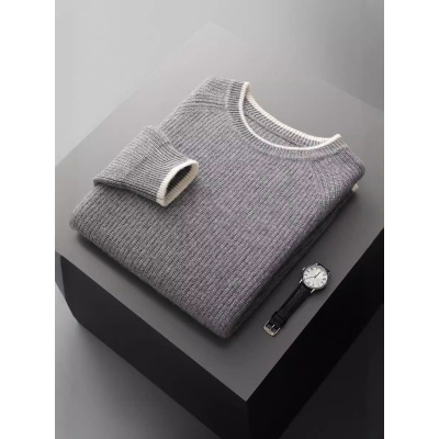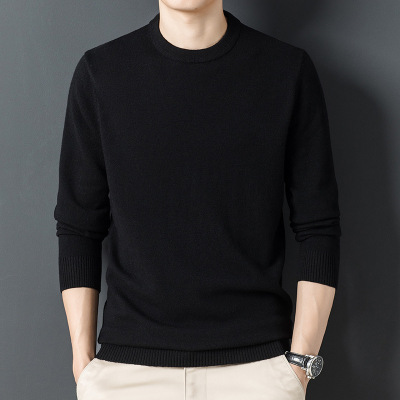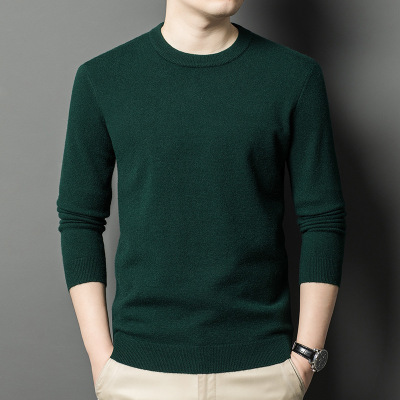 男装秋冬新款300g羊毛衫男士羊毛衫圆领保暖纯色打底毛衣男