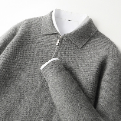 全羊毛衫男POLO领半拉链毛衣宽松加厚秋冬新款针织打底羊毛衫