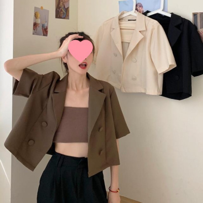 夏装韩版气质新款宽松外搭短款双排扣西装领薄款短袖外套上衣女装