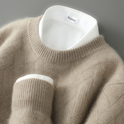2024新款羊绒衫男春秋季毛衣男圆领口袋装饰提花宽松100%羊毛衫男士针织衫打底100纯羊毛衫套头商务羊绒衫男士毛衣