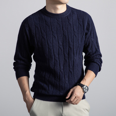 含羊毛男士毛衣秋冬新款圆领套头加厚保暖提花针织羊毛衫男