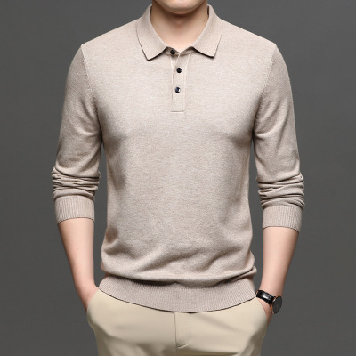 羊毛衫男秋季新款针织翻领上衣羊毛纯色宽松青年百搭毛衣男