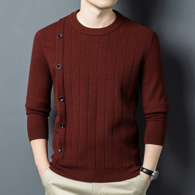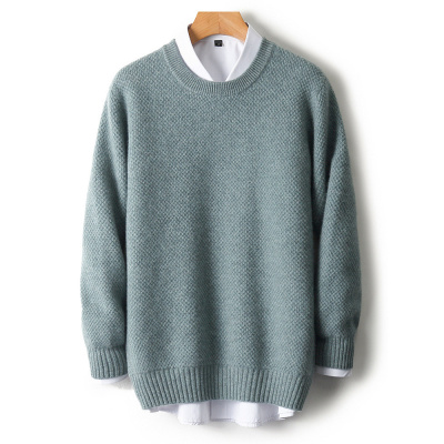 秋冬新款羊毛衫男圆领加厚米粒提花毛衣宽松纯色针织打底衫