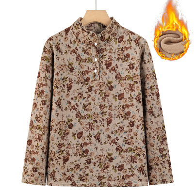 时尚印花女装洋气妈妈装打底衫中年内搭女加绒保暖冬装中老年上衣