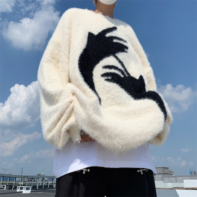 毛衣男美式复古宽松百搭春秋季高街潮牌情侣宽松慵懒风毛衣打底衫