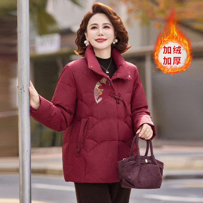 新中式妈妈洋气加绒国风新款打底衫中老年阔太太秋冬时尚宽松毛衣