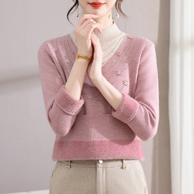 妈妈毛衣女加绒加厚一体绒保暖内搭上衣洋气中年妇女秋冬装打底衫