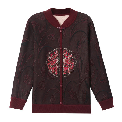 新款妈妈装加绒加厚针织开衫外套中老年女立领拉链保暖毛衣