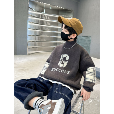 男童加厚毛衣针织衫秋冬款炸街新款冬季中大儿童冬装男孩上衣