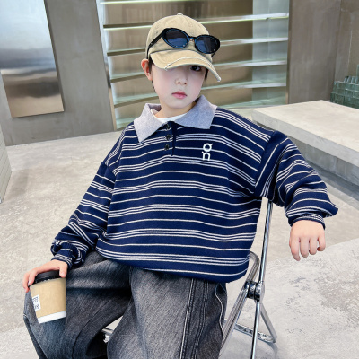 男童加厚毛衣新款中大儿童男孩冬装条纹针织衫秋冬季POLO衫