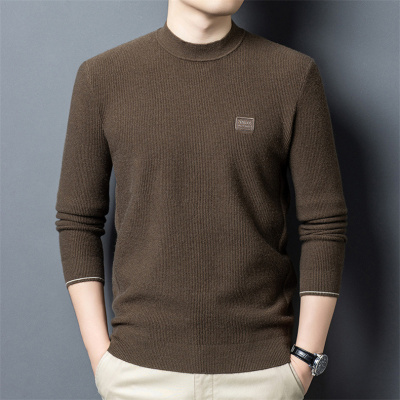 秋冬新款男式半高领提花加厚羊毛衫宽松休闲长袖保暖套头针织毛衣