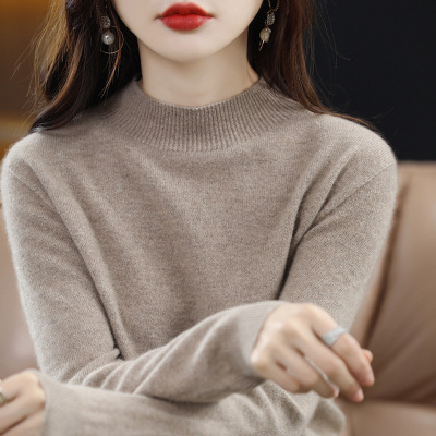 秋冬新款女半高领长袖针织衫短款宽松内搭毛衣纯色套头打底衫