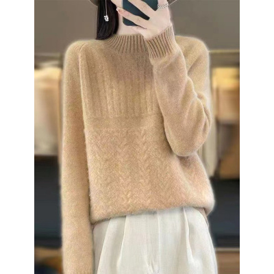 秋冬保暖半高领毛衣女套头外穿新款内搭麻花麦穗上衣打底针织衫