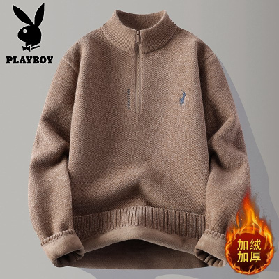 花花公子新款高品质[新款]2025年冬半高拉链领针织毛衣男