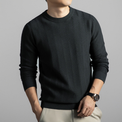 老钱风男士毛衣秋季新款中年长袖圆领休闲提花打底针织衫男