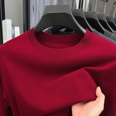 含羊毛蚕丝圆领毛衣男2025秋季薄款长袖纯色针织打底男士羊毛衫
