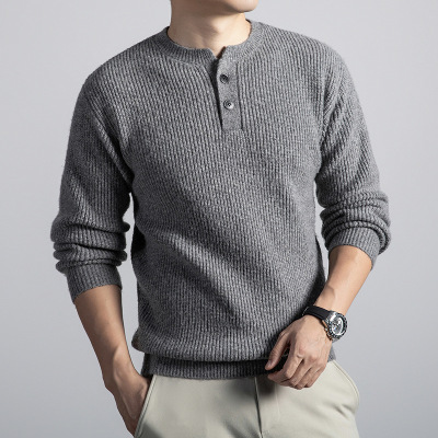老钱风含羊毛毛衣男秋冬新款圆领纯色打底保暖男士针织衫