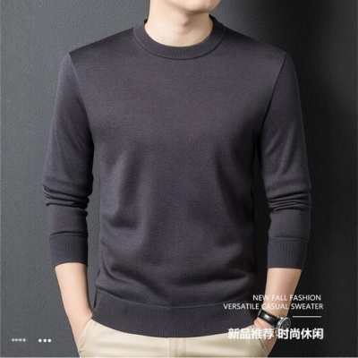 高档网红同款圆领毛衫秋冬新款厚款纯色针织毛衣男重磅