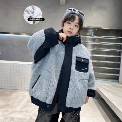 男童加厚外套秋冬款新款中大童帅洋气儿童冬季羊羔绒毛毛衣潮