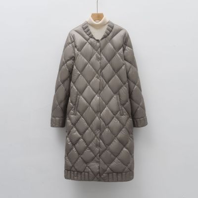 女式90绒轻薄羽绒圆领菱形格中长款女装轻薄款羽绒服