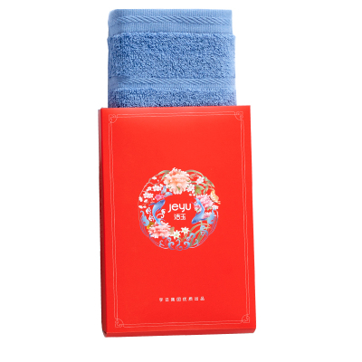 洁玉 似锦开门红云舒单条装纯棉毛巾礼盒 J2701-A 钴月蓝