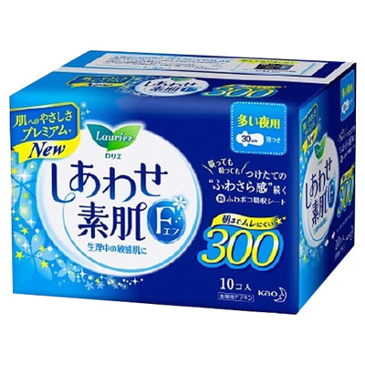 [棉柔透气卫生巾]花王(乐而雅)Lauríer F系列量多夜用护翼型 卫生巾300mm*10片装