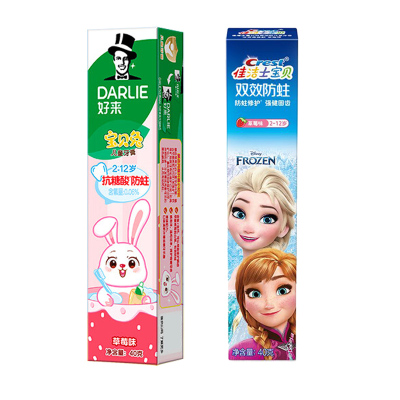 组合装 佳洁士双效防蛀儿童牙膏冰雪奇缘2-12岁40克 DARLIE好来牙膏宝贝兔儿童牙膏草莓味40g