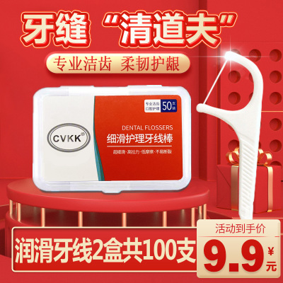 CVKK超细滑护理牙线棒扁线牙线不易断牙签护理 超细滑牙线棒50支/盒*2盒
