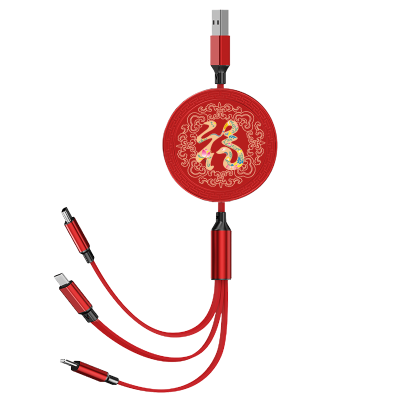 十足酷SZK-X08一拖三伸缩充电线红色