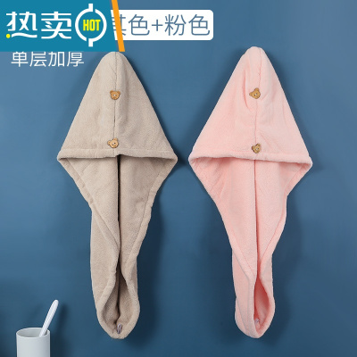 敬平干发帽强吸水速干器擦头发干发巾加厚双层包头巾浴帽可爱护发帽 单层加厚卡其色+粉色[两个装]