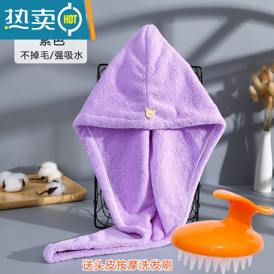 敬平2021新款加厚干发帽吸水速干器可爱浴帽干发巾女擦头发毛巾 常规紫色+送按摩洗发梳
