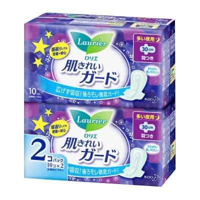 [绵柔透气]花王Lauríer 乐而雅 零触感瞬吸 干爽贴身护翼卫生巾 夜用 300mm 两包(10片装)