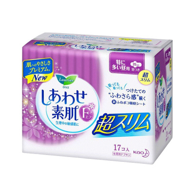 [敏感肌护翼卫生巾]Lauríer 花王(乐而雅) F系列敏感肌超量日用护翼型卫生巾姨妈巾 25厘米 17片装