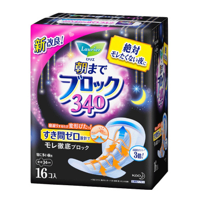 [透气贴身卫生巾]花王(乐而雅)Lauríer 超吸收安睡量天使夜用护翼型卫生巾 姨妈巾 340mm*16片装