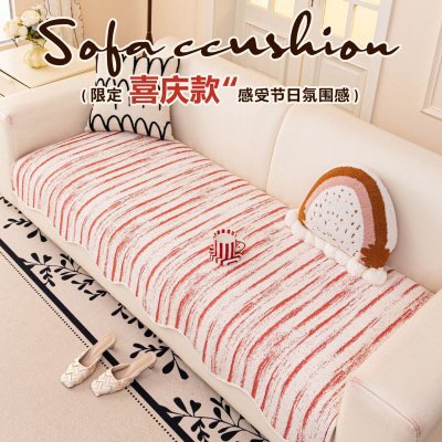 红色喜庆沙发垫新年新款冬季异形高级感盖布直排加厚毛绒沙发坐垫