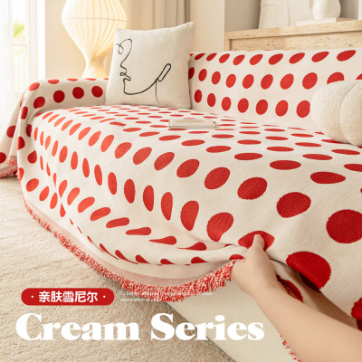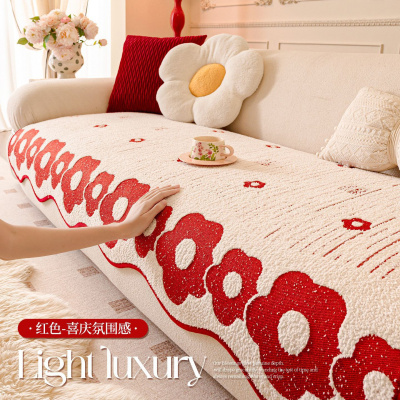 雪尼尔沙发盖布巾新款氛围感坐垫套罩防猫抓红色喜庆沙发盖布