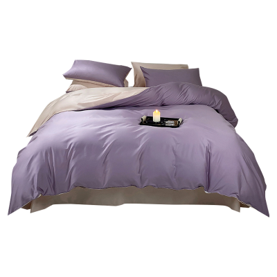 雅鹿家纺全棉60S长绒棉贡缎四件套纯色套件