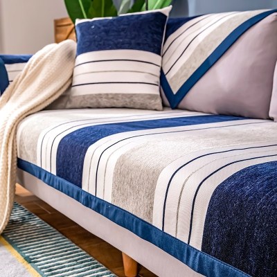 家柏饰(CORATED)北欧四季通用沙发垫防滑简约全包萬能沙发套罩布艺沙发巾沙发盖布 条纹藏青 70*120cm