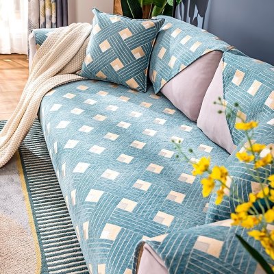 家柏饰(CORATED)北欧四季通用沙发垫防滑简约全包萬能沙发套罩布艺沙发巾沙发盖布 方块蓝 70*70cm