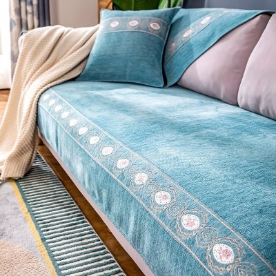 家柏饰(CORATED)北欧四季通用沙发垫防滑简约全包萬能沙发套罩布艺沙发巾沙发盖布 花海蓝 110*180cm