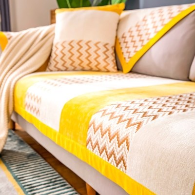 家柏饰(CORATED)北欧四季通用沙发垫防滑简约全包萬能沙发套罩布艺沙发巾沙发盖布 波浪黄 70*70cm