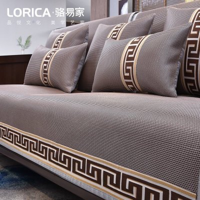 家柏饰(CORATED)沙发垫夏季凉席防滑皮沙发套罩四季通用冰丝坐垫夏天款藤席 福延年-茶色 抱枕套45*45cm