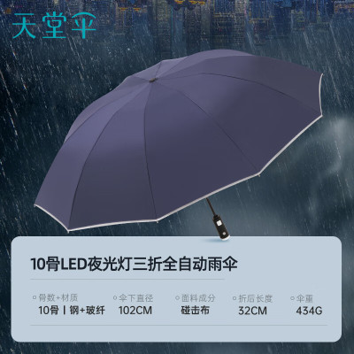 天堂伞全钢大号全自动三折商务抗风拒水晴雨两用58CM*10K 31140E光线
