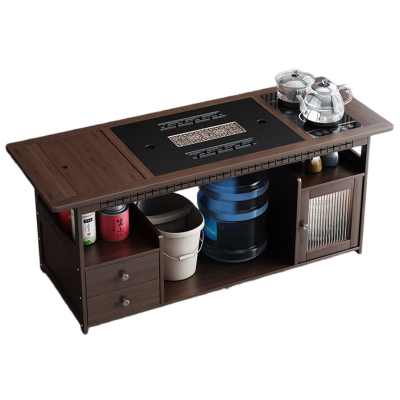 锦北 移动茶台家用竹木小茶桌烧水壶一体简约现代功夫茶几120长乌金石全自动电器
